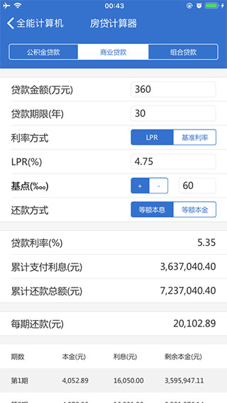 房贷计算器苹果版是一款致力于房贷计算的手机应用软件,专注于最新利率房贷计算,它能够帮助用户更好的去计算自己的放贷利息,这样就可以更好的帮助用户做出一个很好的房贷规划,然后也好对自己的开销花费做一笔计划。同时,该软件还提供了贷款相关的计算服务,非常适合广大房贷一族使用,无论公积金贷款,商业贷款,还是组合贷款,并不管是等额本息还是等额本金,这一个工具即可帮助用户轻松计算出详细的还款金额信息,有需要的用户欢迎来下载吧。