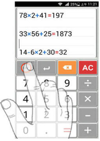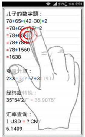 7、长按"="号即可查看计算过程,非常方便老师和家长检查作业;