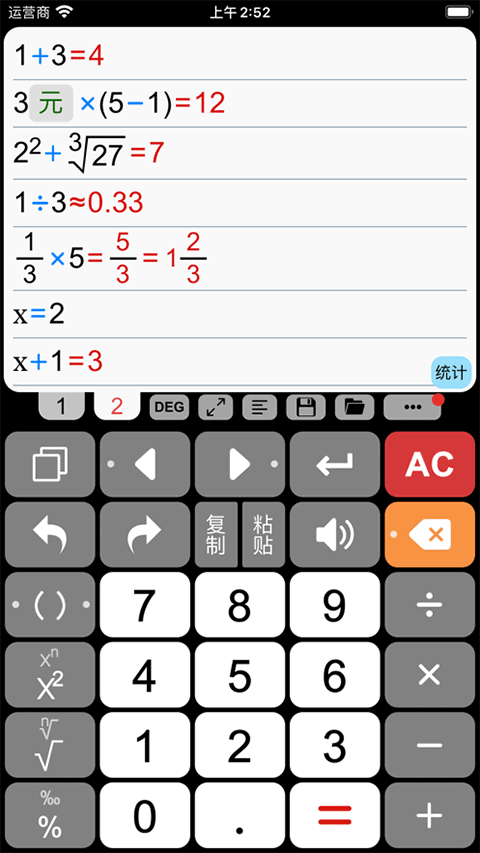 计算管家苹果版是一款功能强大的智能计算器,使用场景广泛,界面设计独特,操作极其人性化,自带多套纯色主题,可满足用户不同的使用需求,该软件提供了日常生活计算、商务记账、财务统计、学习验算、科学计算从简到繁的各种功能,可为商务人士、学生、家长老师和科研人员提供全面的计算服务记录保存功能,轻松搞定复杂的数字。此外,软件最大的特点就是非常适合触摸屏计算,其集单点和多点触控、真人语音、表达式计算、进制转换、单位转换、汇率换算等众多功能为一体,追求用最简单的操作实现最强大的功能,感兴趣的用户快来下载试试吧。