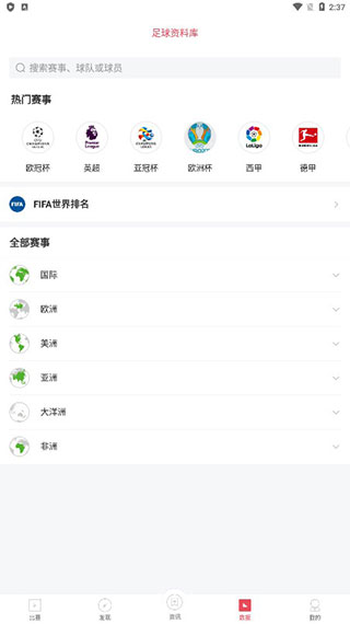 3、在数据界面可搜索自己想知道的赛事、球队或球员;