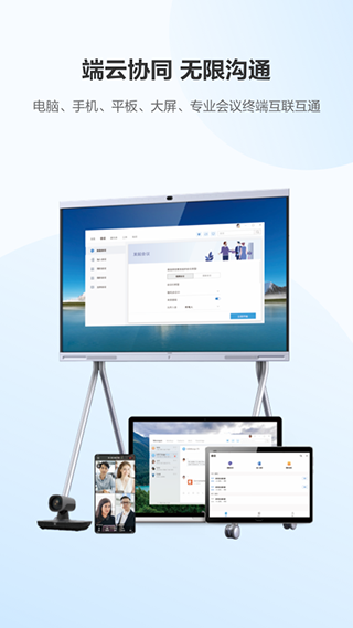 1、支持计算机、手机、平板、智慧大屏、华为会议终端、第三方会议终端互联互通,信息在各个终端间无缝流转