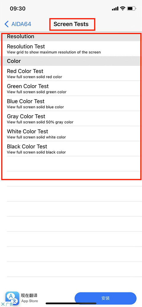 5、进入【Screen Tests】屏幕测试界面,可进行【Resolution Test】清晰到测试和【Color】色彩测试,以上就是AIDA64的使用教程了,