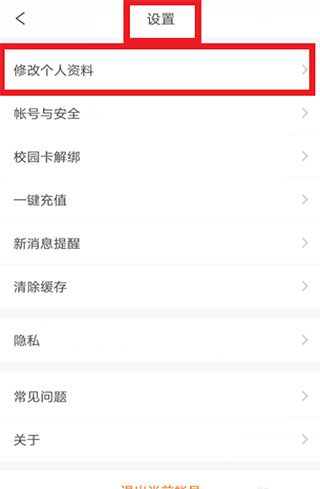 6、最后小编教一下大家怎么修改学校,在上步的设置点入此页,按首行改资料的此字样。