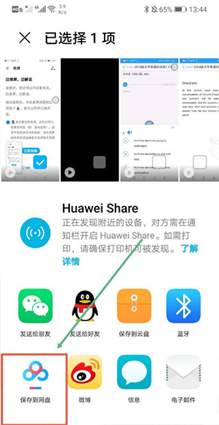 6、然后在相册中找到该视频,点击左下角的“分享”,点击 保存到网盘。