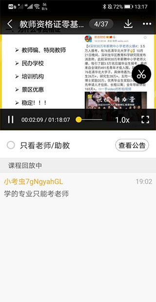 4、无限回放:直播课程结束后,你还可以在考前无限次在线听回放,APP原生全屏播放比网页听课视域更舒适。