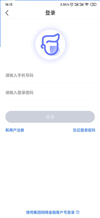 1、使用手机号+密码进行登录,如果你是新用户的话,请点击新住户注册: