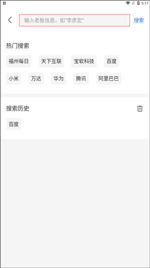 3、然后在回到主页面,选好所要查询的方面,再点击上方的搜索栏,列如查老板,就输入老板信息(李彦宏):