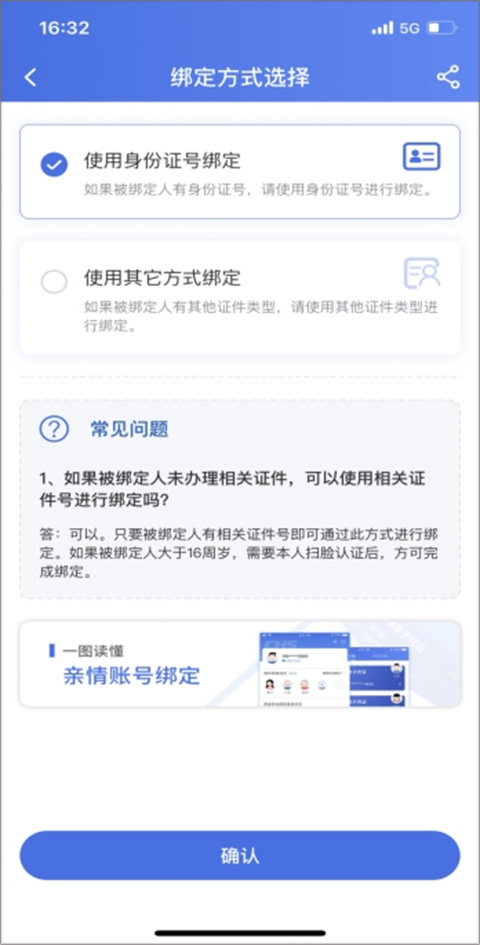 绑定方式:使用身份证号绑定