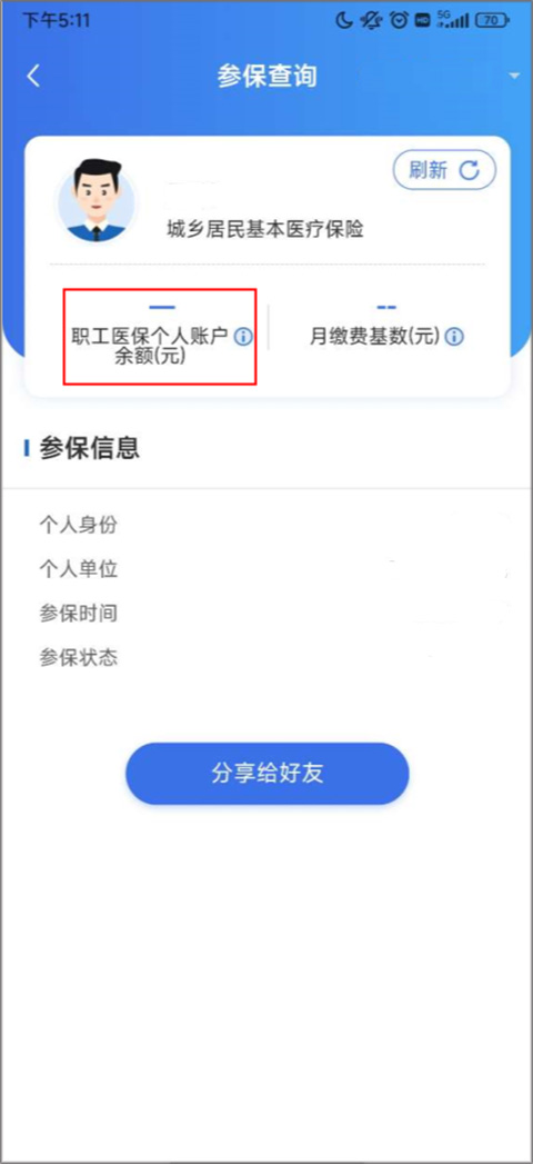 4、进入参保查询页面,查看“职工医保个人账户余额”。
