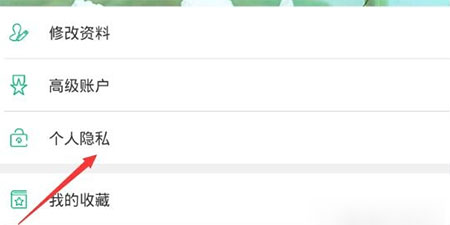 2、然后在“我”的页面中找到“个人隐私”,点击进入;