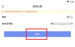 4、依次输入姓名和身份证号码后点击下方的“提交”按钮即可