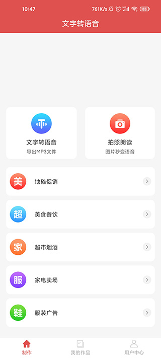 文字转语音是一款基于语音合成技术的专业配音软件,适用于商场店铺广告促销配音、地摊叫卖录音制作、英语听力音频制作、有声朗读等多种场景语音合成;专业配音 一键完成,还不快来体验。