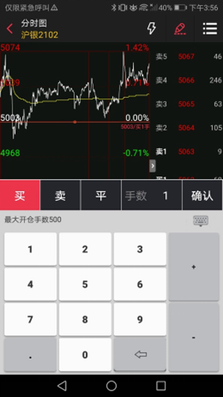 点击手数框,会出现键盘,键盘顶部会出现“最大可平仓手数”的提示
