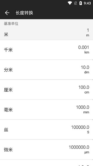 2、以长度转换为例,用户可以看到米、千米的多种格式;