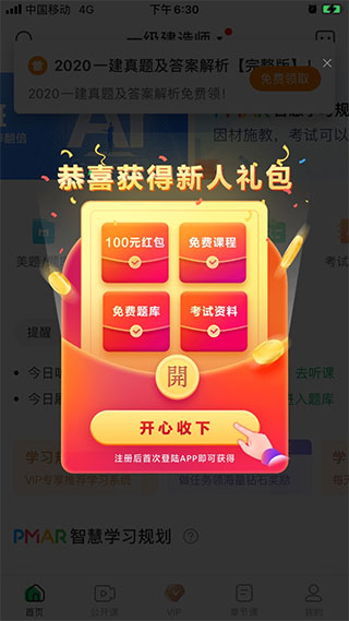 1、在本站下载打开注会万题库苹果版后进入首页,点击新人礼包图片;