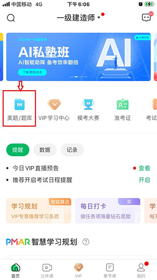 3、选择【美题/题库】的快速功能入口,进入题库功能;