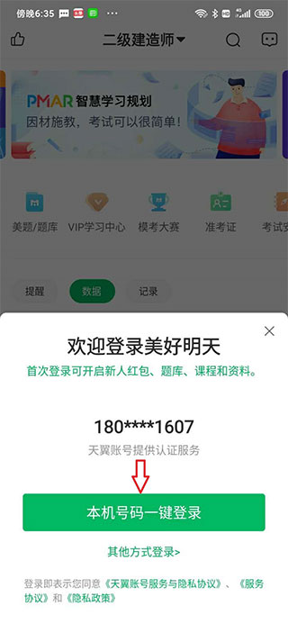 2、在弹出的登录弹框中选择【本机号码一键登录】,实现快速注册并登录操作;