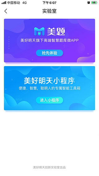 4、或是点击【我的】- 【实验室】 - 【选择美题卡片】,进入题库功能;