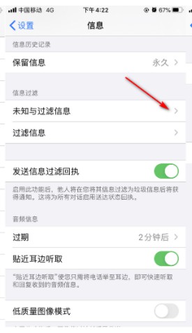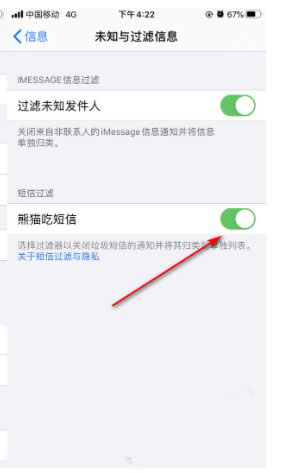 4、点击未知与过滤信息,开启熊猫吃短信的功能就好了;