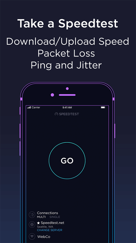 最近经常听身边的朋友抱怨家里网速慢,想要解决问题自然要有好用的工具进行测试,所以这里小编推荐的一款专业的测网速软件speedtest苹果版,这是一款公认稳定可靠的第三方测速服务软件,如果在您的 iPhone 或 iPad 上安装了该应用,那么就可以随时随地测试连接速度和质量。其中内置了Ookla提供的专业技术,无论是测试智能设备上的宽带、蜂窝网络或者 Wi-Fi 的连接速度,都能通过它一键搞定,在了解下载、上传和Ping值速度后,可以很方便进行选择其他宽带服务商,同时你也可以借助Ookla提供庞大的全球服务器网络,详细了解世界上任何地方的互联网速度。