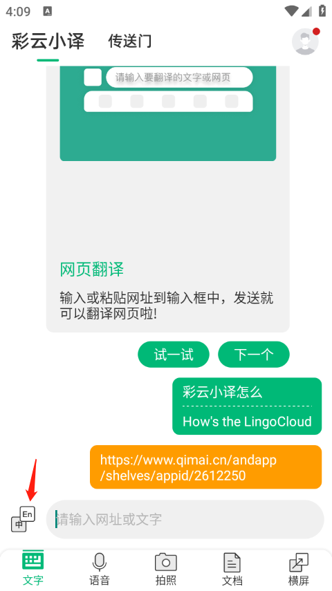1、进入该软件app后,到文字页面,点击输入框左边的图标。