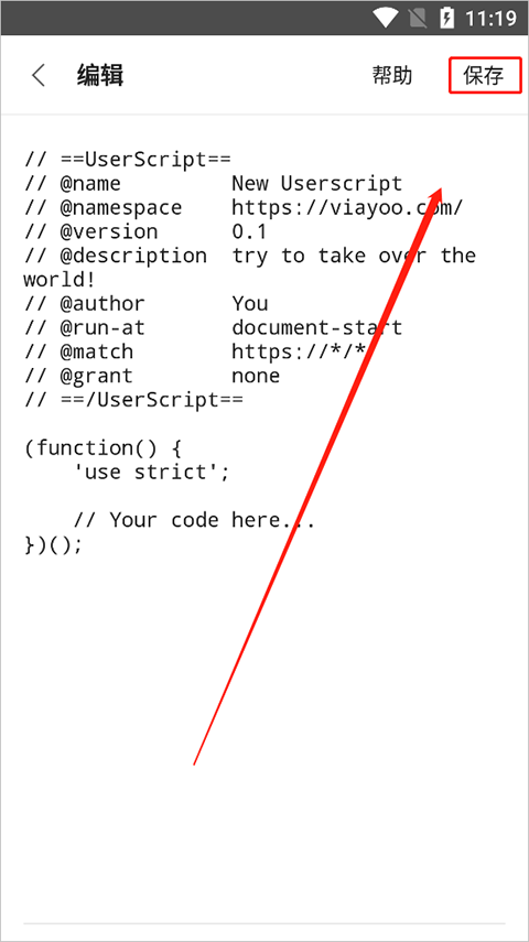 5、进入添加脚本界面,输入脚本内容,点击【保存】。
