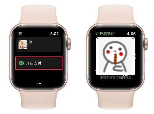 1、打开 Apple Watch 的微信,左滑,就可以看到「开启支付」的选项,点击「开启支付」,就会出现开启支付的确认二维码,你需要通过手机微信扫描并进行后续操作。