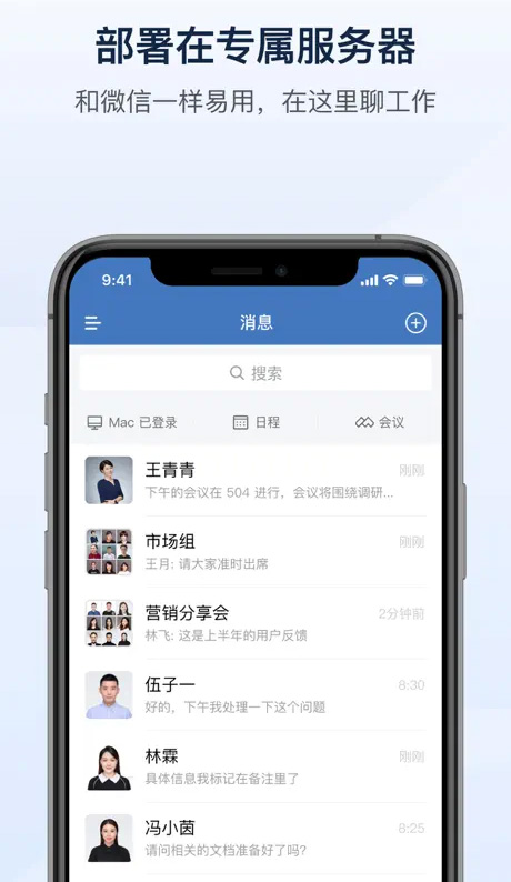 【内网存储】聊天记录、通讯录等数据存储在政府内网,安全可控。
