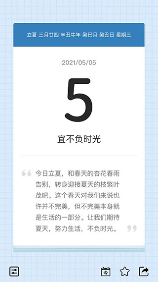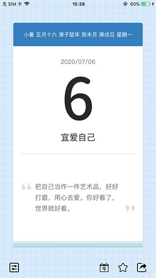 打开鸡汤日历软件之后界面非常的简约,首页显示的内容就是今日的日历和推荐的励志鸡汤;