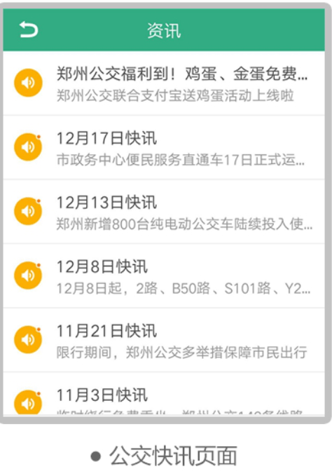 1、“快讯”页面显示最新公交资讯,让您第一时间掌握公交新闻