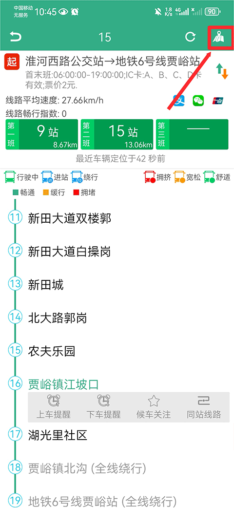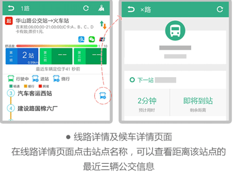 4、在该页面中也能很清楚的看到公交车到哪了