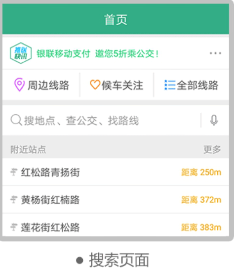2、“搜索”页面提供周边线路、周边站点等信息在搜索框输入要查询的内容进行查询。