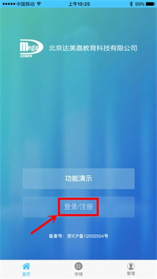 1、下载打开学情达app苹果版,点击【登录/注册】。