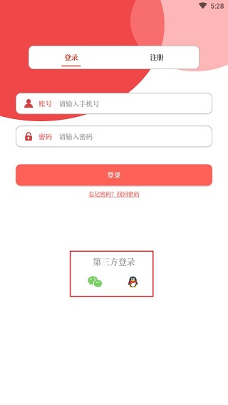 或者你也可以凭借第三方登录平台进行登录,如QQ、微信。