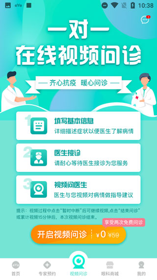 【视频问诊】暖心义诊,足不出户,一对一免费视频连线眼科专家/医生。