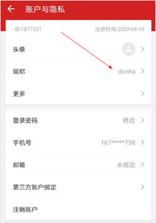 3、点击昵称,进行修改