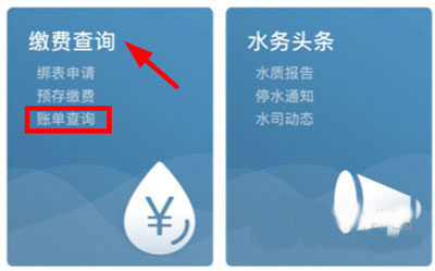 1、打开指尖水务app苹果版,点击屏幕上方的【缴费查询】功能按钮。