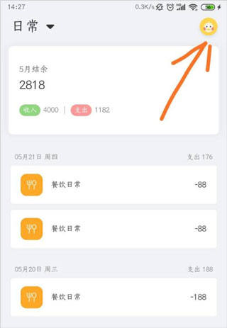 1、打开记账鸭苹果版,点击主页右上角的头像