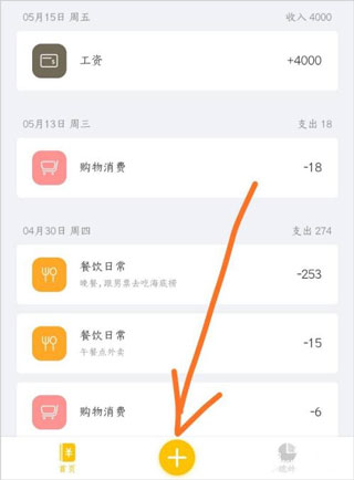 1、点击打开记账鸭ios版,点击页面下方的“+”号