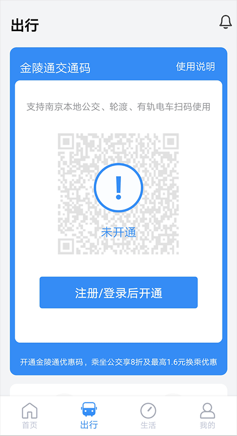 当您注册并实名认证本APP后,同意《金陵通交通码用户使用协议》后可直接开通交通码服务。