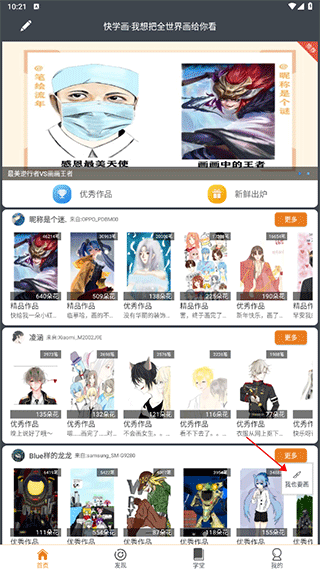 1、首先打开快学画画吧,在首页点击【我也要画】。