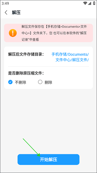 5、选择是否删除原压缩文件,然后点击“开始解压”