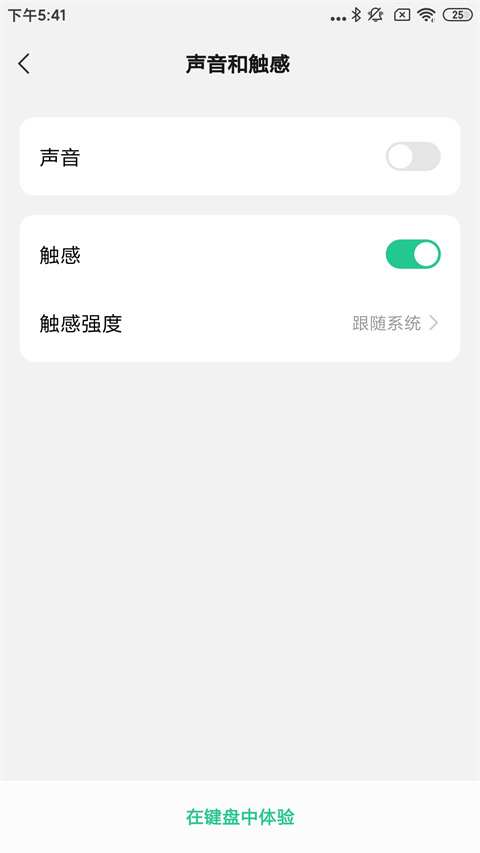 5、还可以设置跟随系统、最弱、适中、较强、最强等触感。