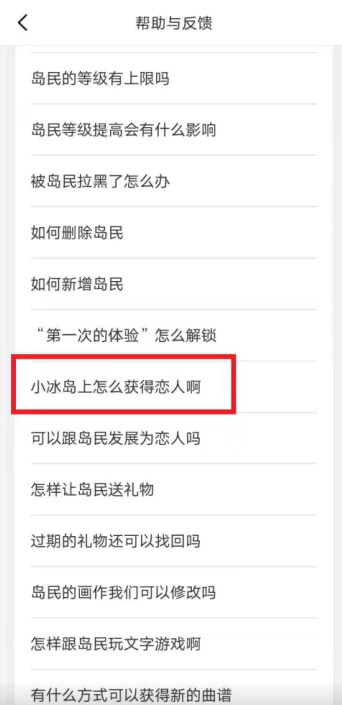 2、接着在打开的新页面中可以点击【小冰岛上怎么获得恋人啊】;