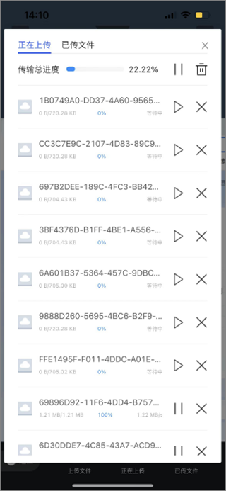 4、完成选择要上传的文件后会进入上传列表