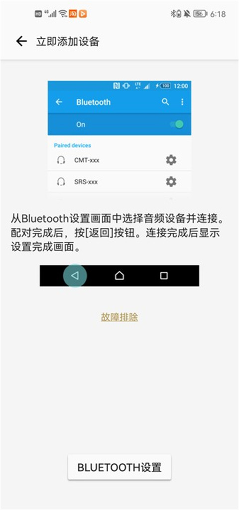 “Sony | Music Center”将在BLUETOOTH连接完成后自动启动。按照画面上的说明操作。