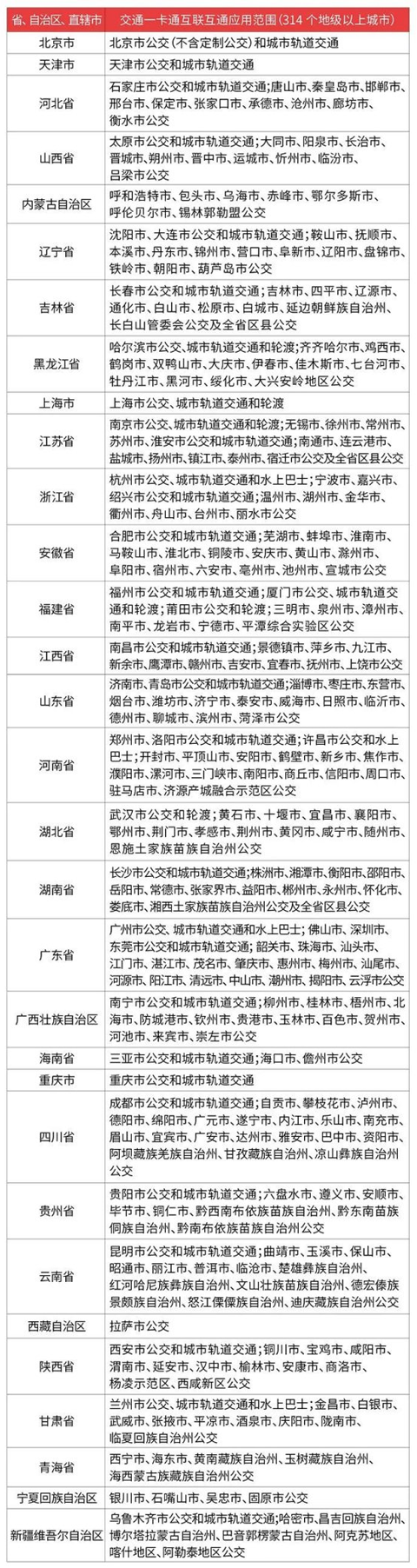 目前潇湘一卡通支持全国314个地级以上城市,以下是城市列表