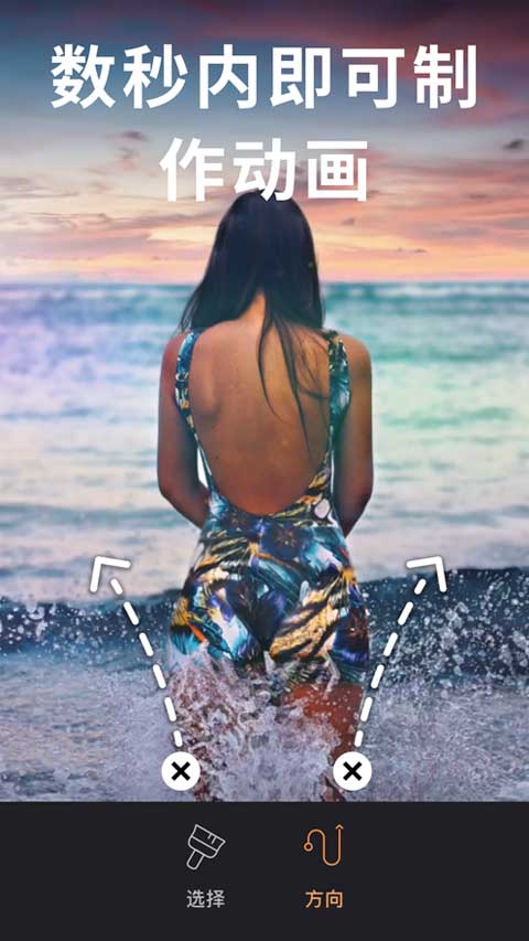 快来试用全新类型的照片艺术!使用motionleap ios免费版,对您的照片进行动画处理,让它们栩栩如生。选择动画处理一个或几个元素,将观看者的目光吸引到想让照片变活的任何部分。它的主要功能就是让一张静态的图片变成动态的,让图片动起来。用户操作起来也非常的简单,就是在图片需要动起来的部分添加路径,添加锚降低动画区内的速度,在锁定图中的局部的运动,在让的定的元素保持静态,让动图变得等价的真实。此外motionleap ios免费版还自带了一个强大的素材库,你可以随意的选择自己喜欢的动画进行添加,如果不喜欢也可以随时更换,有需要的朋友欢迎下载体验。