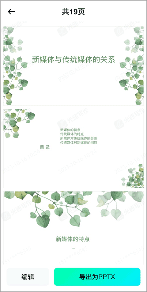 3、根据输入的标题会自动生成一个完整的PPT文档。