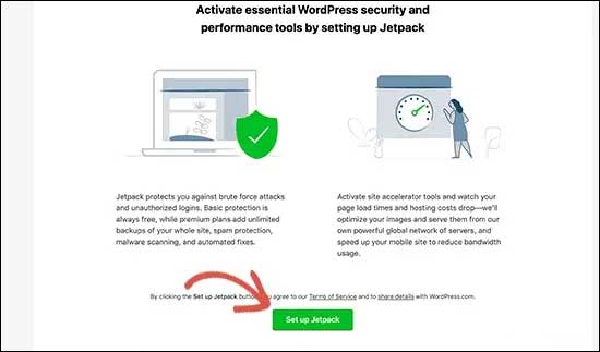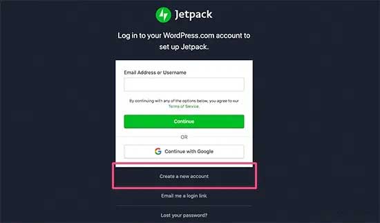 接下来,系统会要求您使用WordPress.com帐户登录。如果您已经有一个,那么您可以继续并登录。否则,您可以继续注册一个免费帐户。